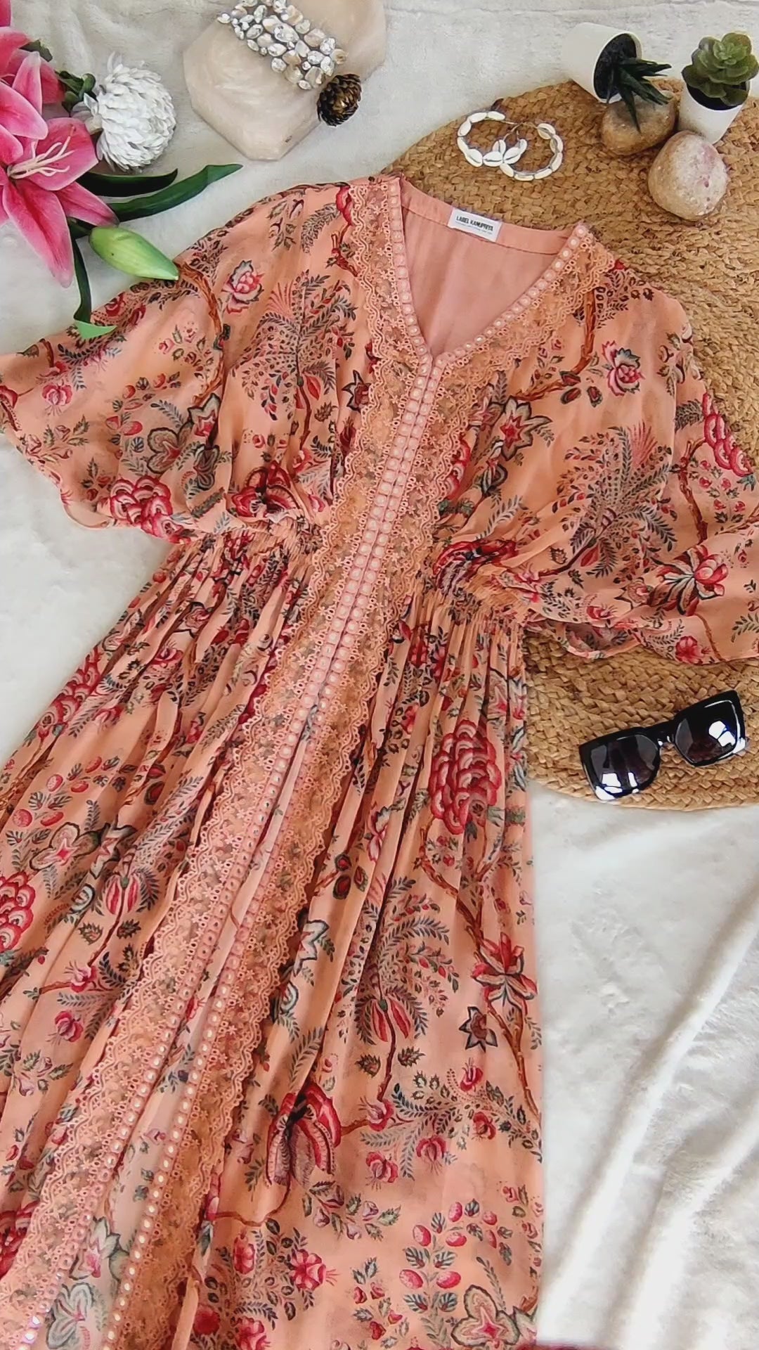 Peach Tropical Printed Georgette Jacket & Pant Co-ord Set