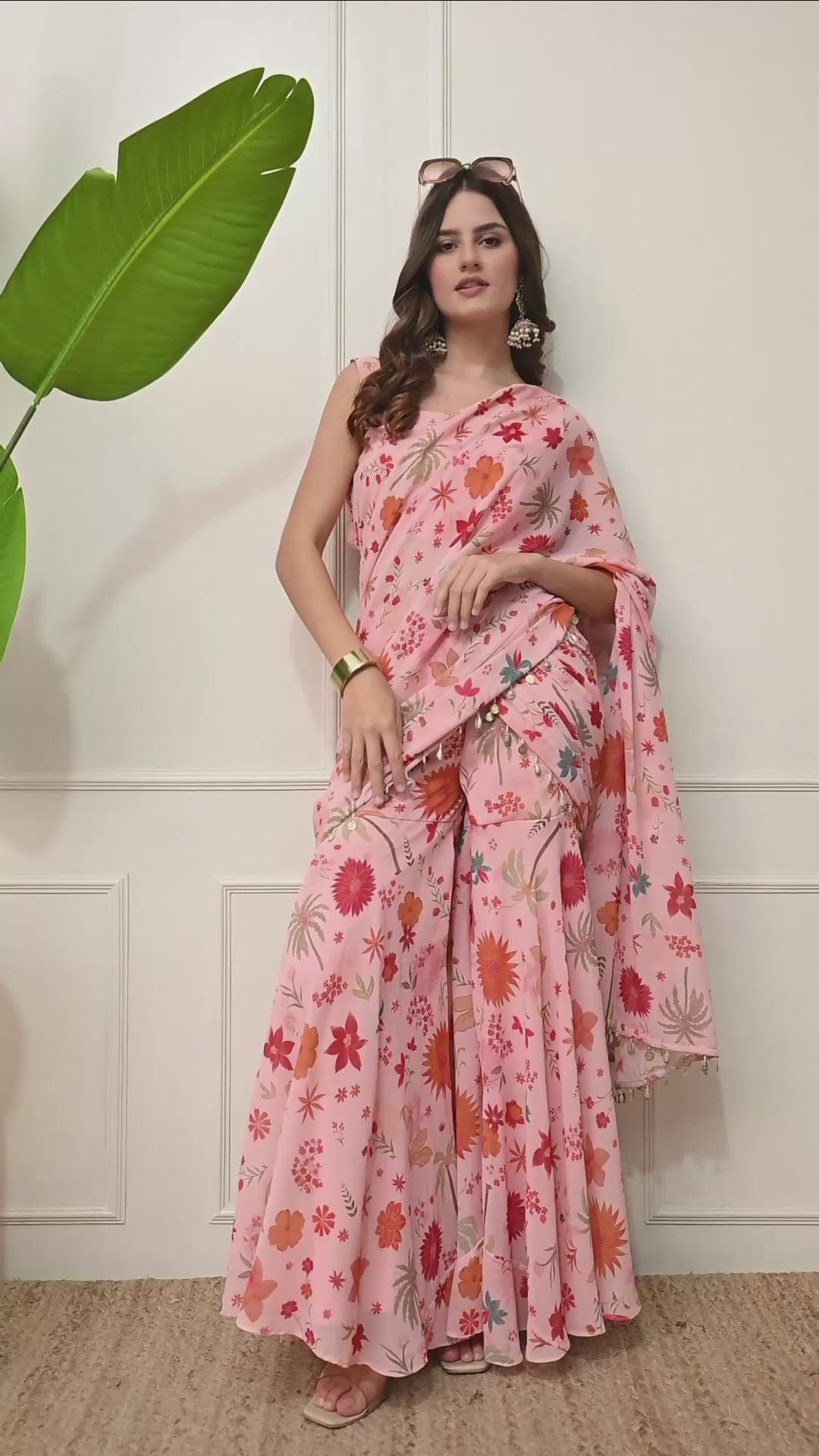 Pink Tropical Crop Top & Draped Skirt Co-Ord Set