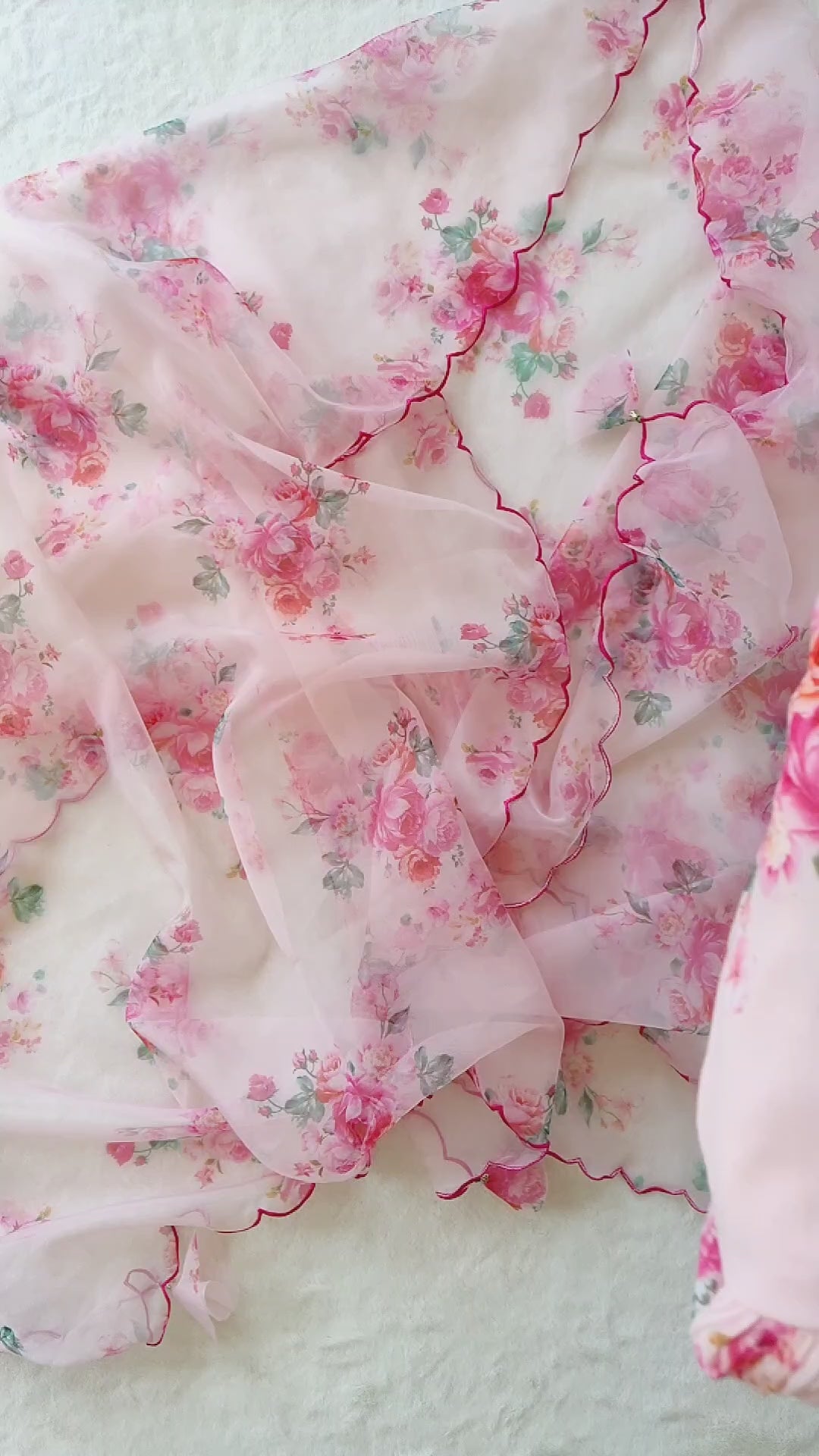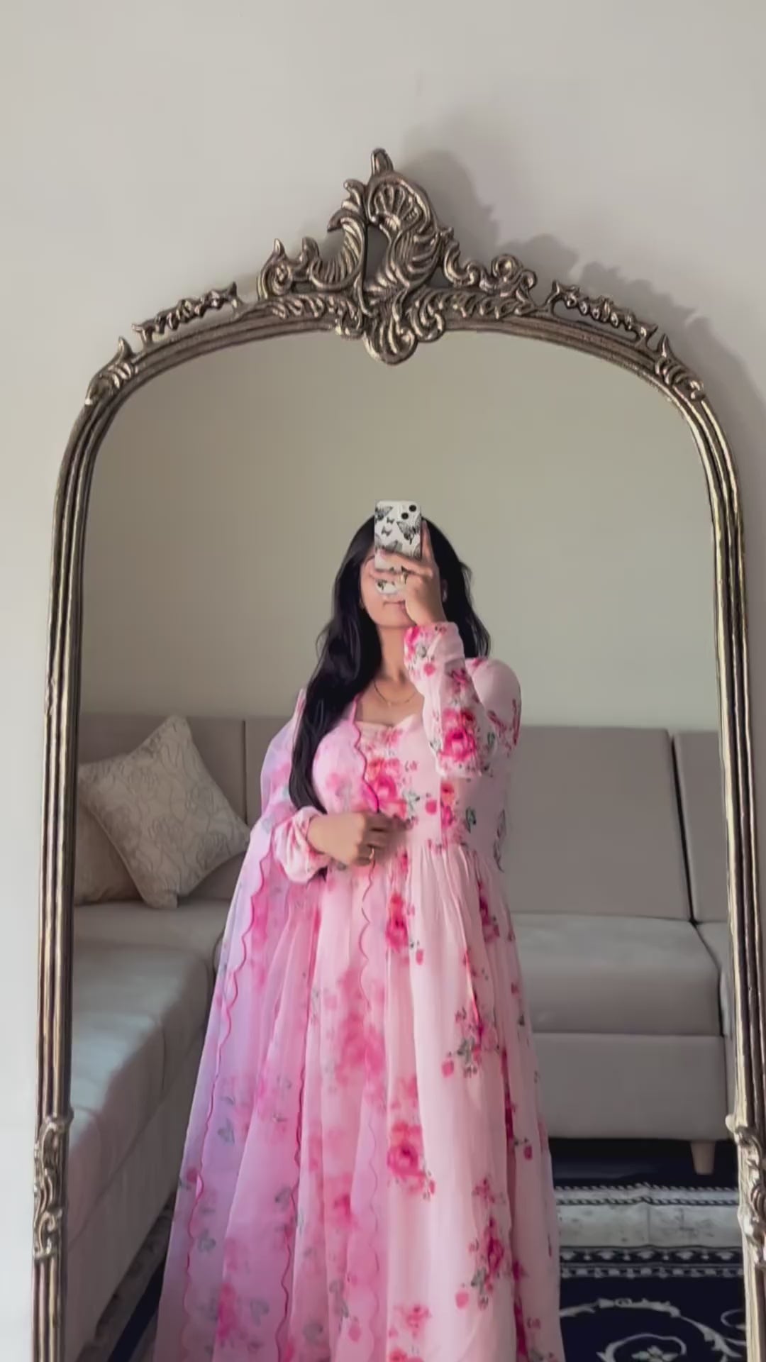 Anam Blush Pink Floral Georgette Anarkali with Cutwork Organza Dupatta
