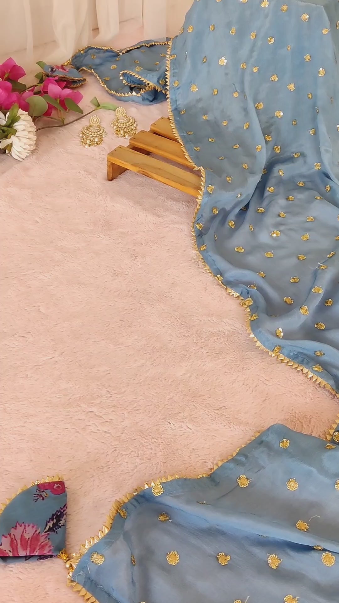 - Fully finished Chinon Dupatta with all-over sequin bootis 2.5mtr