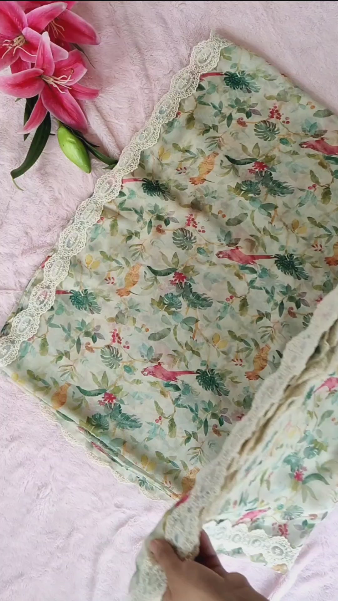 - Floral print Saree with cutwork lace border