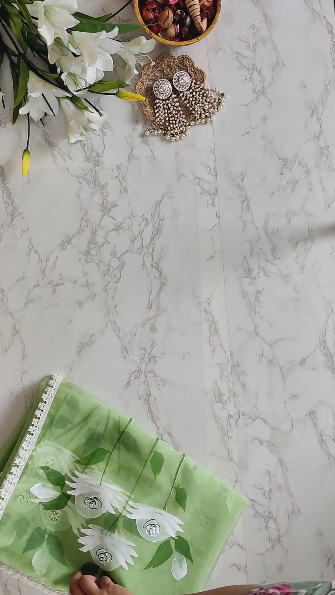 - Blouse is made in cotton dotted net fabric in color matching to saree