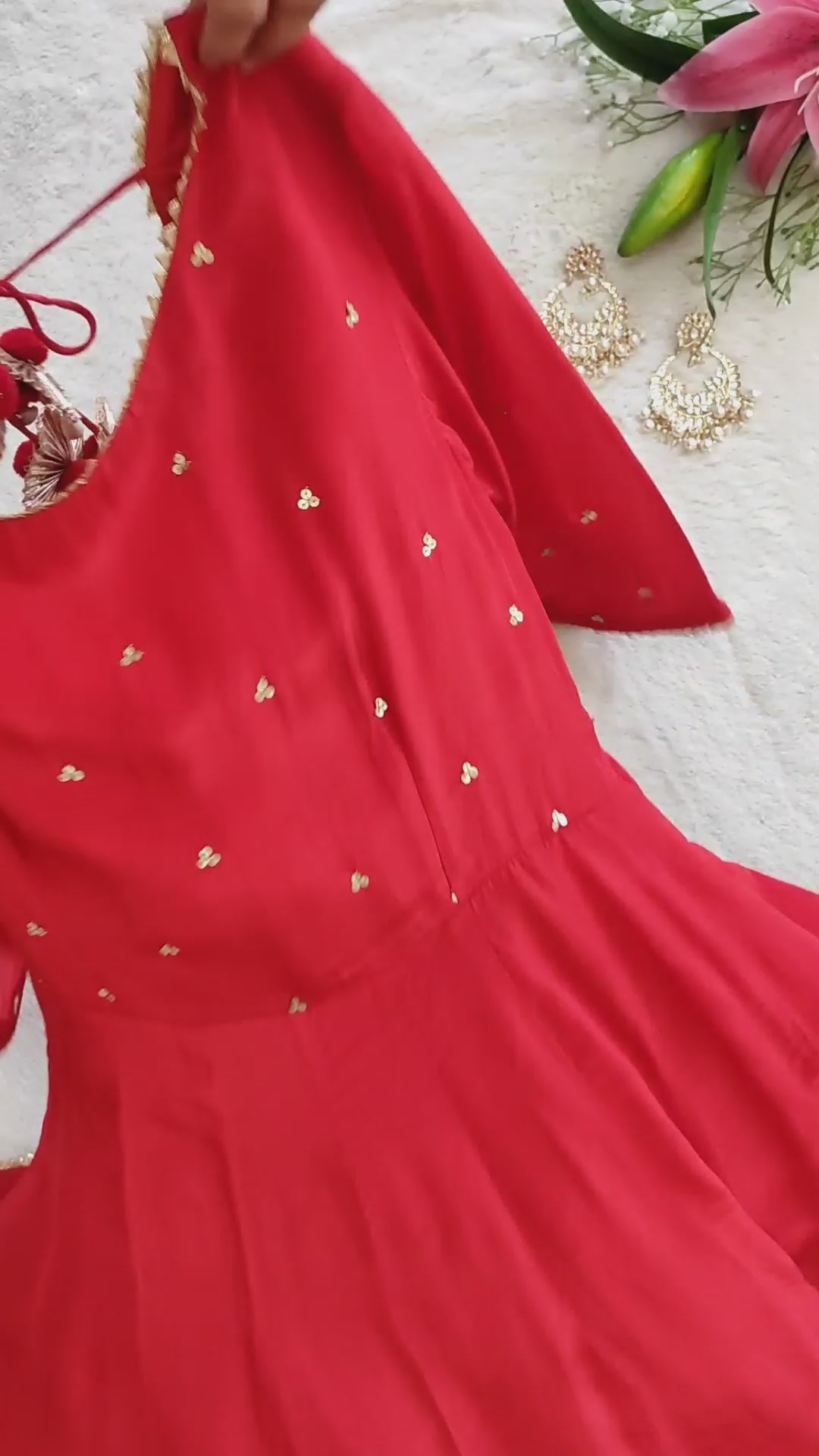 Red Crepe Kurta & Salwar Set With Leheriya Dupatta