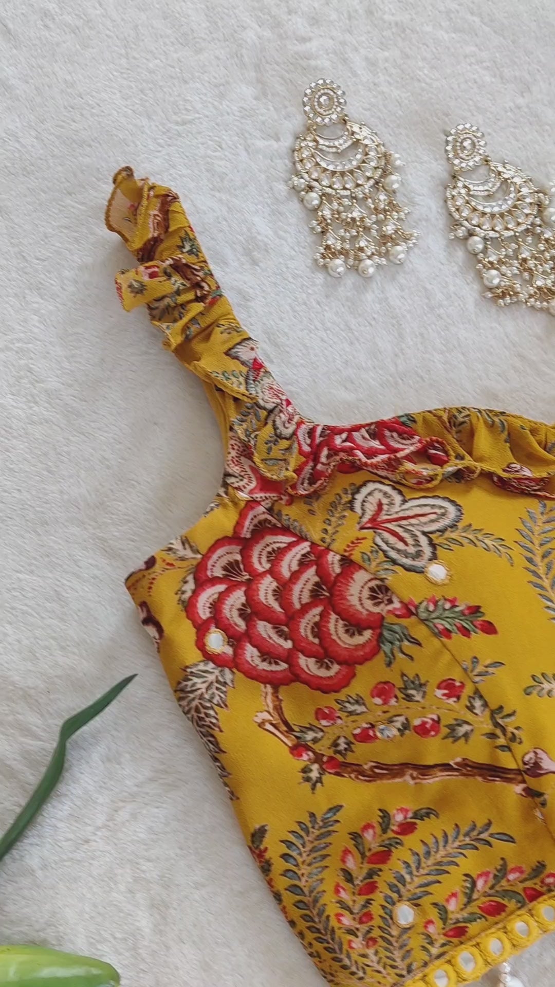 Tropical Yellow Frilly Mirrorwork Georgette Lehenga